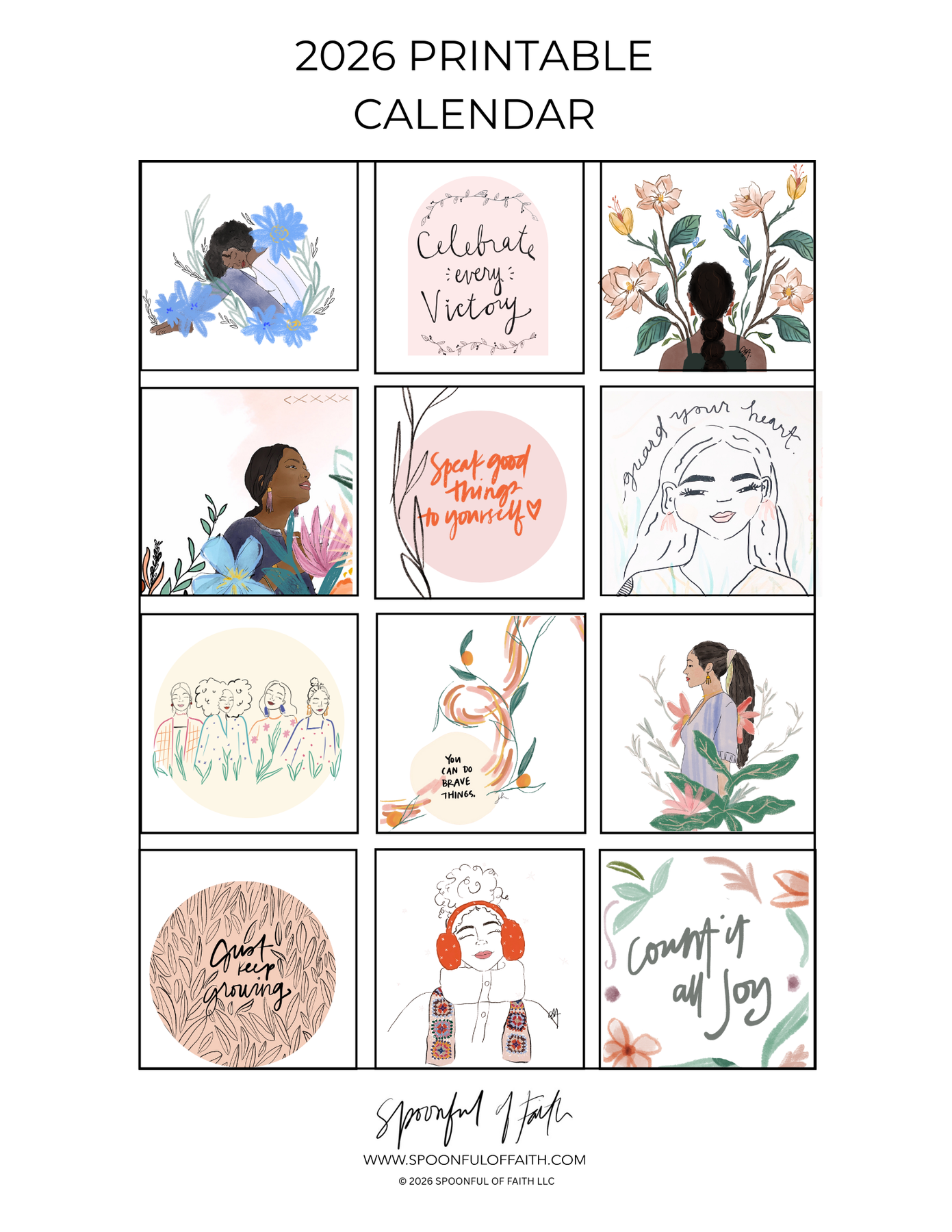 This is a DIGITAL DOWNLOAD of a the 2026 Spoonful of Faith Printable calendar by by Jena Holliday.